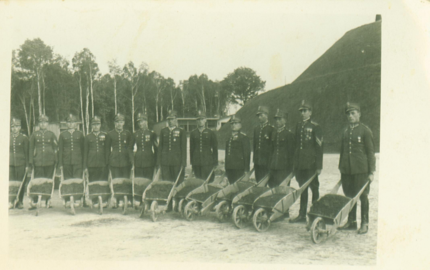 Ułani 10. Pułku Ułanów Litewskich przy pracach budowlanych Kopca im. Marszałka Józefa Piłsudskiego na Sowińcu w Krakowie, 1936r.