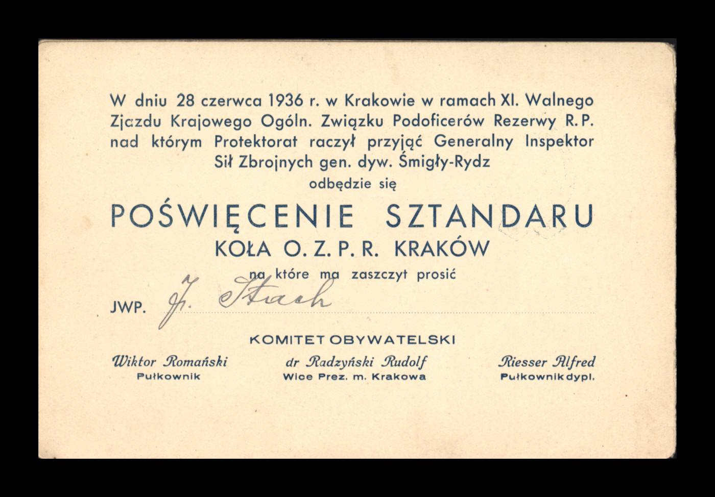 W ramach projektu „Archiwa Rodzinne Niepodległej” do Archiwum Narodowego w Krakowie zostały przekazane w darze przez Pana Marka Kołodzieja materiały archiwalne z lat 1905-1972 dotyczące życia i działalności Jana Stacha i jego rodziny. Kolekcja obejmuje m.in. fotografie i portrety, dokumenty osobiste oraz akta dotyczące służby wojskowej i pracy zawodowej.