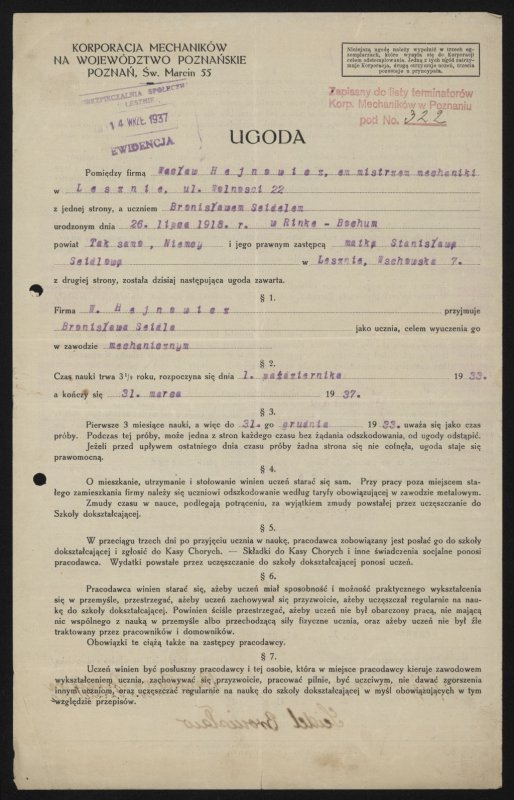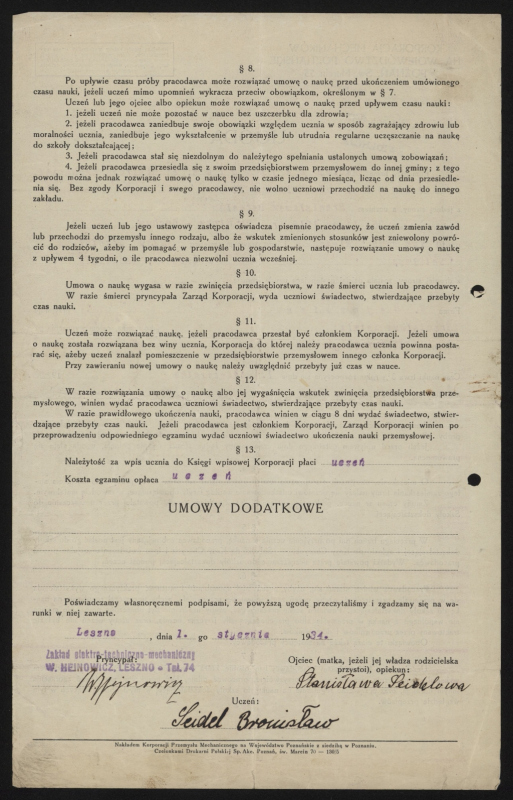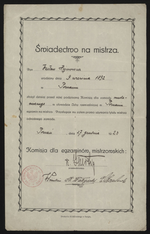 W 1923 r. złożył w Izbie Rzemieślniczej w Poznaniu egzamin mistrzowski w zawodzie mechanika. W 1932 r. otrzymał pozwolenie na prowadzenie pojazdów mechanicznych. W połowie lat 30. uzyskał licencję na prowadzenie zakładu elektro-techniczno-mechanicznego. Posiadał także uprawnienia do kształcenia uczniów rzemieślniczych w zawodzie mechanicznym. Oprócz warsztatu prowadził wraz z żoną sklep w Lesznie przy ul. Wolności 22, z asortymentem elektryczno-mechanicznym.