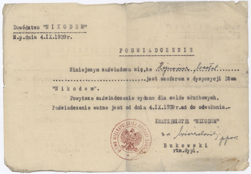 Po wybuchu II wojny światowej został szoferem do dyspozycji dowództwa „Nikodem”, co dokumentuje poświadczenie dowództwa „Nikodem” Wielkopolskiej Brygady Kawalerii z 4 września 1939 r. Walczył w bitwie nad Bzurą. Po przegranej bitwie wrócił do Leszna. W maju 1940 r. został aresztowany i osadzony w obozie koncentracyjnym w Dachau, a następnie w Mauthausen, gdzie zmarł 16 maja 1941 r.
